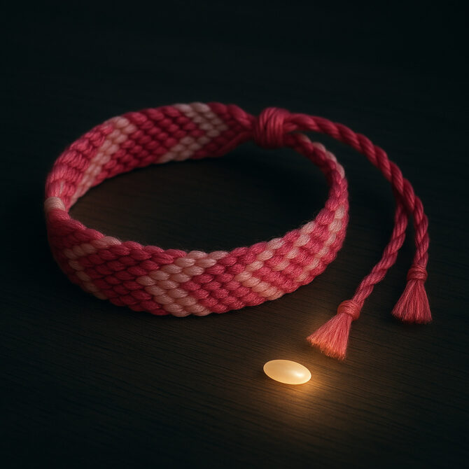 むかしミサンガを編むの、流行りましたよね。作ったミサンガを自分の手にまくまえに